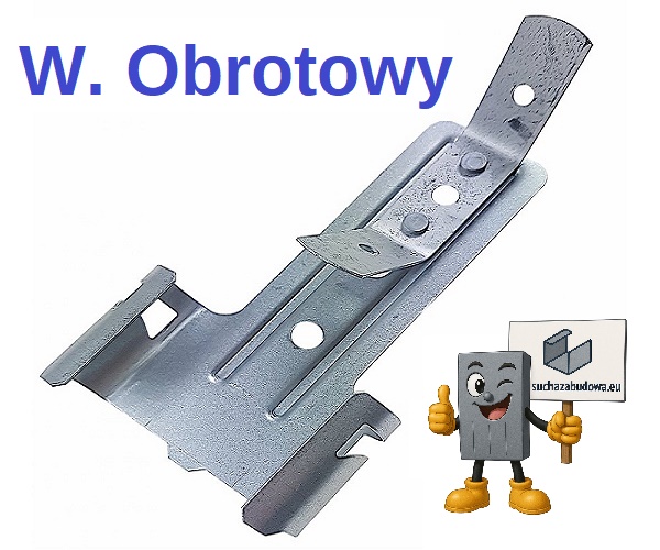 Wieszak obrotowy to element systemów suchej zabudowy przeznaczony do mocowania profili CD60 do stropu. Dzięki możliwości współpracy z prętem montażowym lub drutem z oczkiem, pozwala na precyzyjne ustawienie wysokości sufitu. Wykonany z ocynkowanej stali, charakteryzuje się wytrzymałością i trwałością.